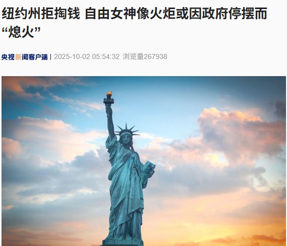 据央视新闻,当地时间 10 月 1 日,美国纽约州州长凯西·霍楚尔办公室发言人表示,纽约州不会像此前政府停摆时那样,承担自由女神像的开放运营费用。州长称这次自由女神像火炬可能会 「彻底熄灭」。