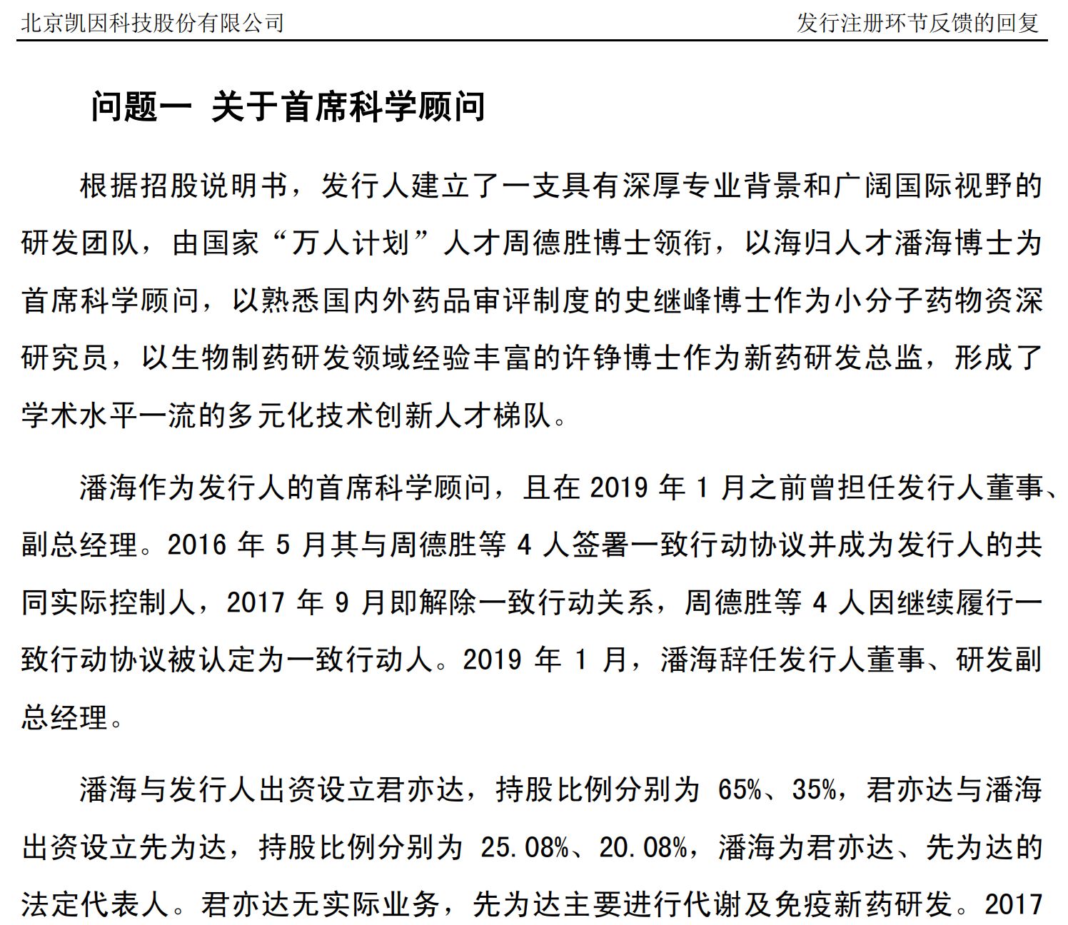 凯因科技方面曾解释称,潘海是因筹划个人创业,解除了与创始团队的一致行动协议,于 2019 年 1 月后不再担任董事及高管职务,仅担任首席科学顾问。