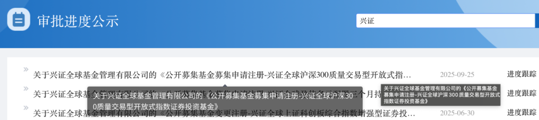 证监会网站信息显示,9 月 25 日,兴证全球基金上报了一只名为 「兴证全球沪深 300 质量 ETF」 的基金。如果该 ETF 获批,成立 22 年的兴证全球基金将迎来首只 ETF 产品。
