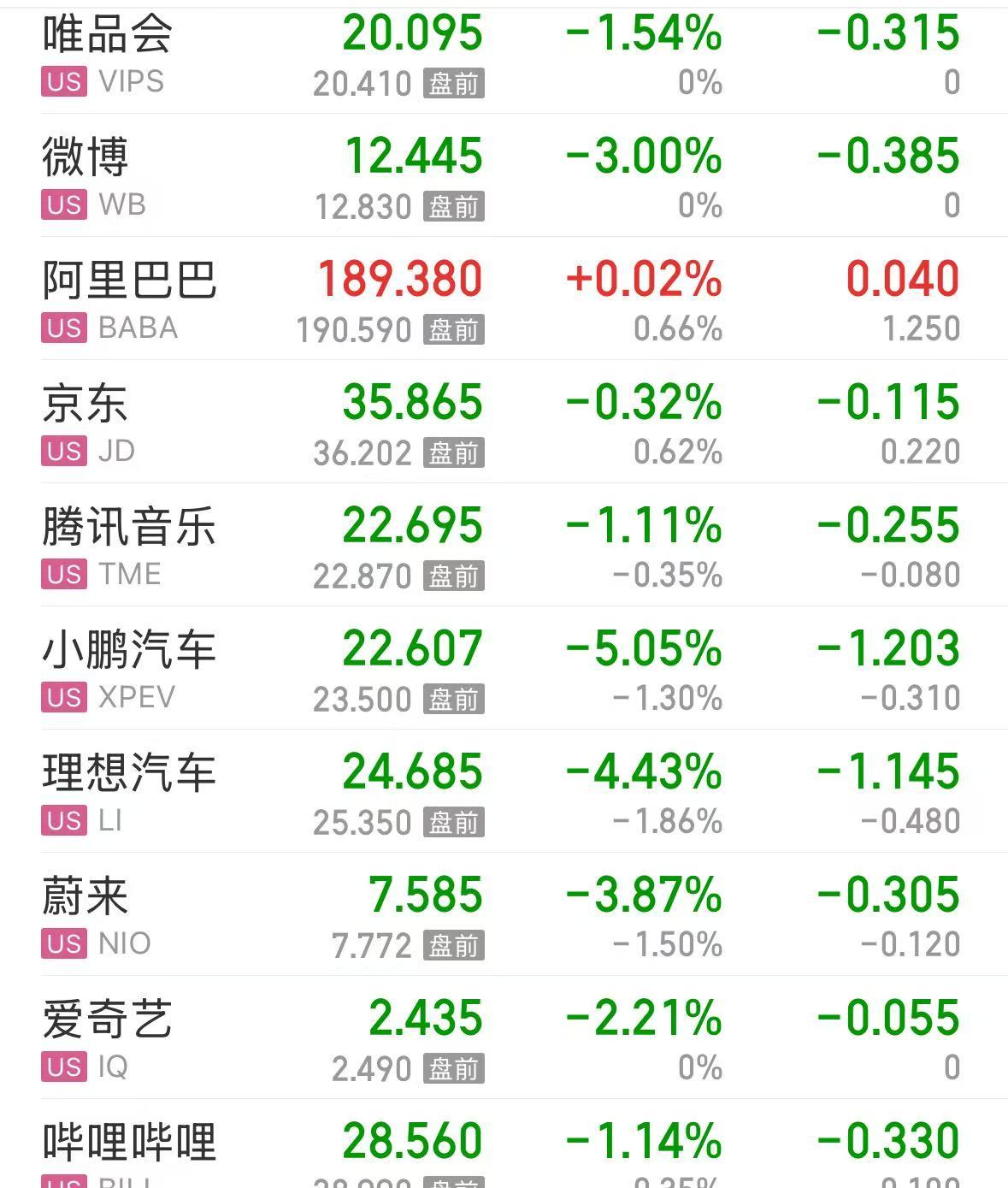 热门中概股多数下跌,小鹏汽车跌超 5%,理想汽车跌超 4%,蔚来跌超 3%,微博下跌 3%。