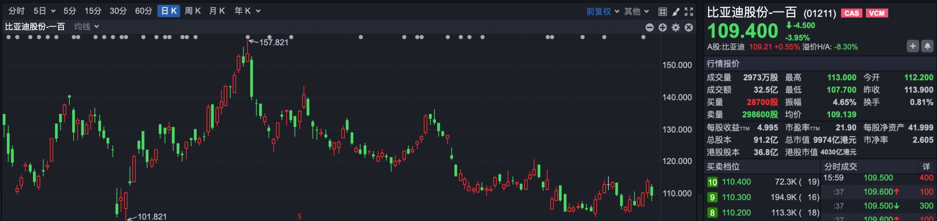 焦点板块,汽车股全线走低。其中,比亚迪股份 (01211.HK) 下跌 3.95%,小鹏汽车-W(09868.HK) 下跌 2.84%,理想汽车-W(02015.HK) 下跌 2.35%,蔚来-SW(09866.HK) 下跌 2.12%。此外,北京汽车 (01958.HK)、吉利汽车 (00175.HK)、五菱汽车 (00305.HK)、零跑汽车 (09863.HK) 等下跌超 1%。