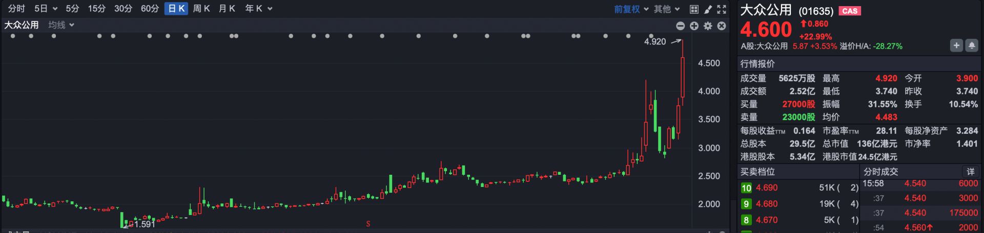 其他焦点公司,大众公用 (01635.HK) 涨超 20%。大众公用曾在互动平台回复投资者称,公司参股深创投,深创投及其基金持有宇树科技股份。大众公用半年报显示,公司持有深创投 10.80% 股权。