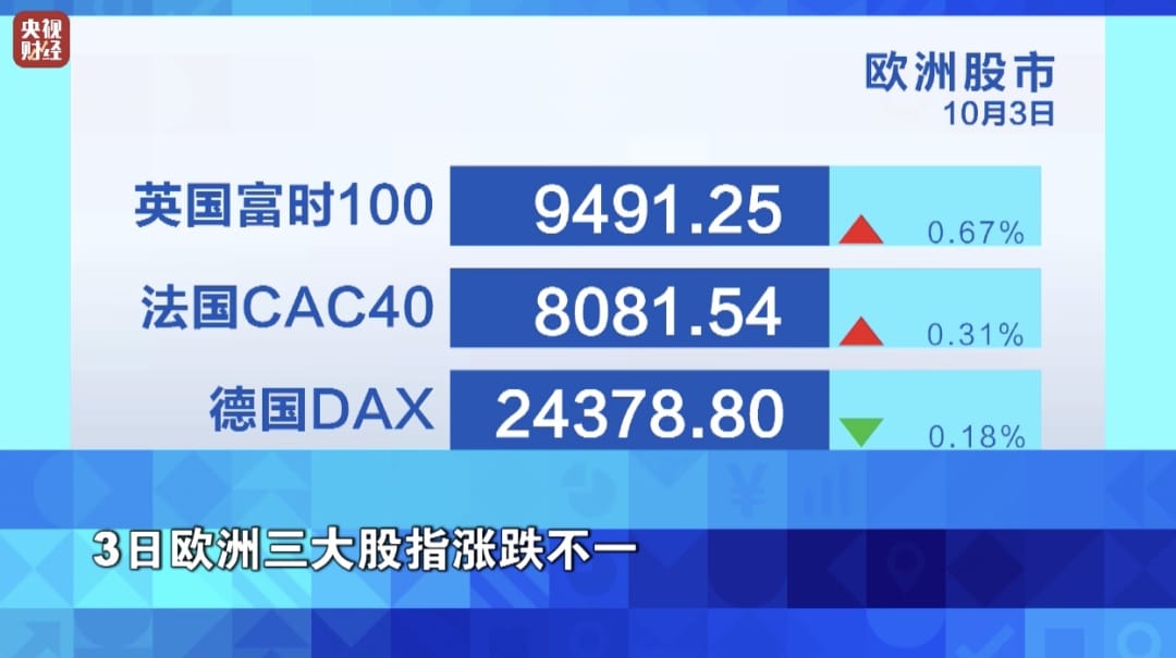 3 日欧洲三大股指涨跌不一