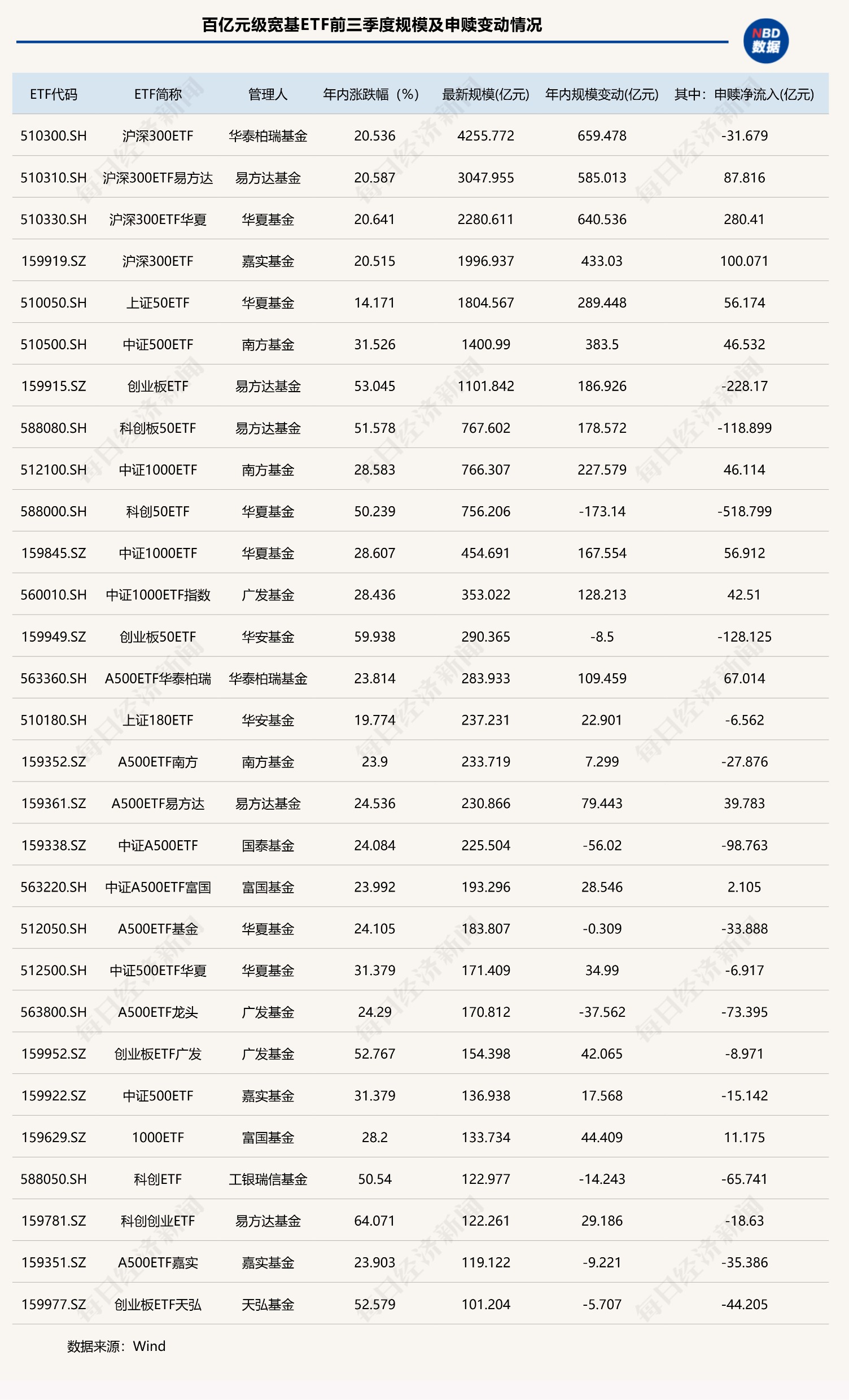 29 只宽基 ETF 规模超 100 亿元,其中过半产品遭净赎回