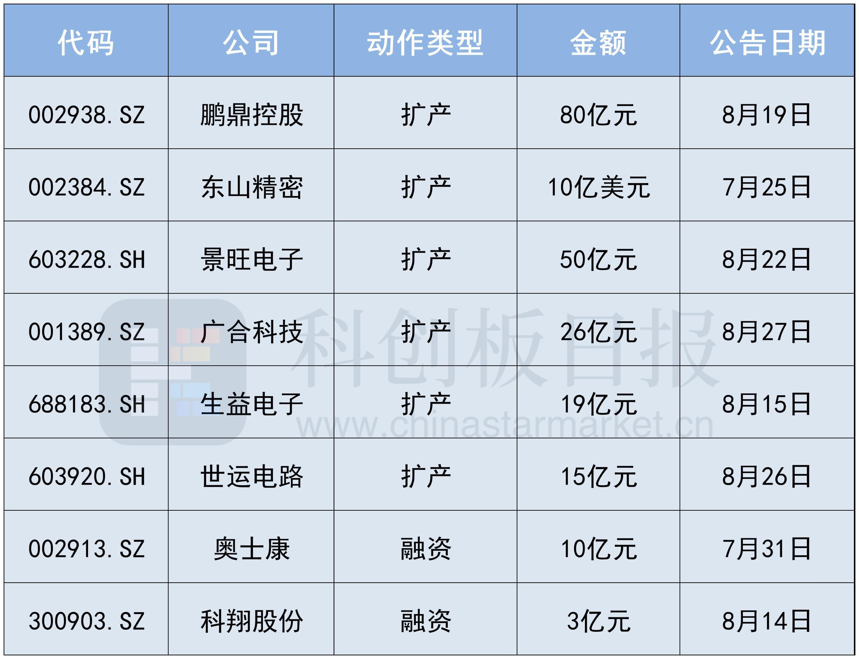 在上述计划中,鹏鼎控股拟投资金额最大,高达 80 亿元。公告显示,公司计划在淮安园区建设包括 SLP、高阶 HDI 及 HLC 等产品产能及扩充软板。而即便是拟融资金额最小的科翔股份,其定增募资计划也多达 3 个 「小目标」。