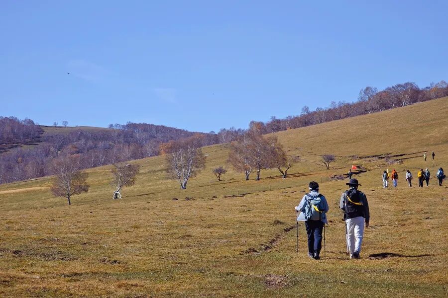 参加草原徒步活动的小维,近两年开始参与户外徒步活动,她感受到,「山林逸兴,可以延年」,「边走路边欣赏风景,晒晒太阳补补钙,更能增强免疫力」。