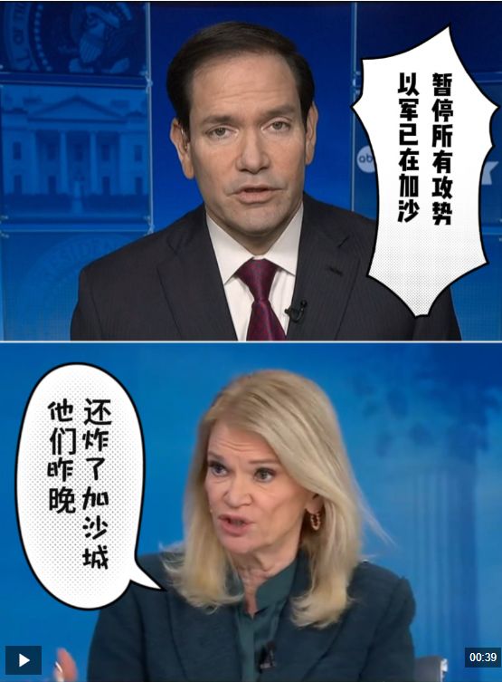 鲁比奥称,「幸运的是,以色列已经宣布暂停该地区的所有进攻性军事行动,除非是为了应对迫在眉睫的威胁……」 但他此番说辞遭到节目主持人当场 「打脸」。主持人 「提醒」 他,「加沙城昨晚还发生了轰炸」。