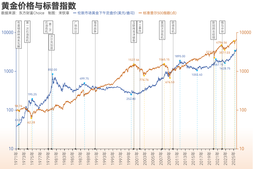 一位华尔街投行贵金属部人士认为,这主要得益于黄金在某些全球性经济金融风险事件发生期间的表现优于标普 500 指数,奠定了黄金涨幅长期跑赢标普 500 指数的基础。