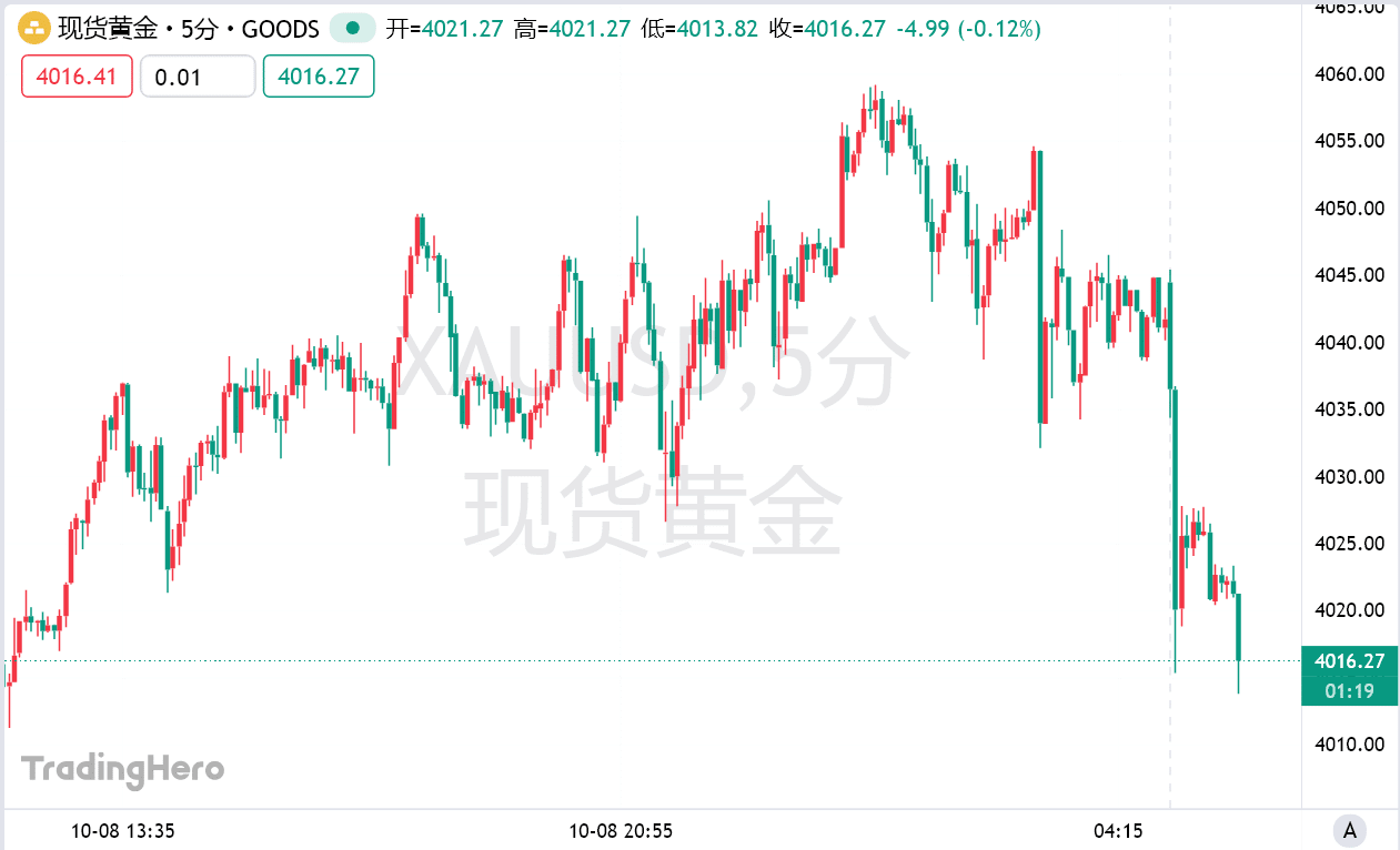 受此消息影响,现货黄金周四早盘跌幅迅速扩大,截至发稿跌约 30 美元,跌幅约 0.6%。