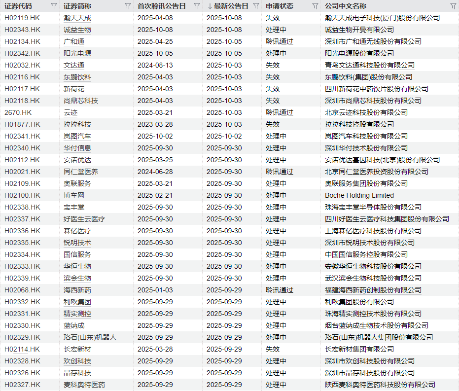 9 月 28 日至 10 月 8 日,港股共有 32 家公司递交招股书。