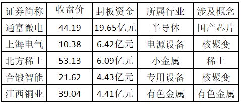 (注:封板资金越多的个股,说明该股被资金追捧,其延续上涨概率较大。)