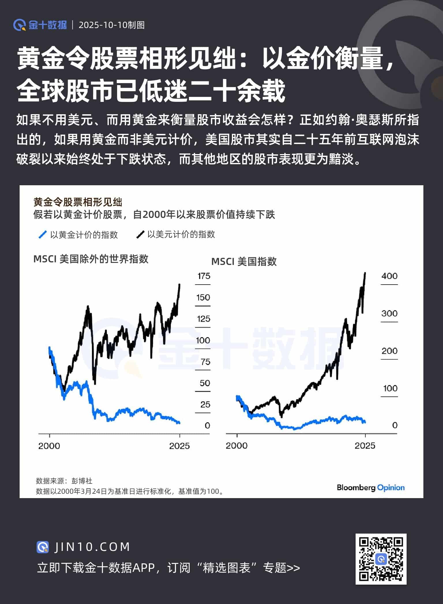 黄金令股票相形见绌:以金价衡量,全球股市已低迷二十余载