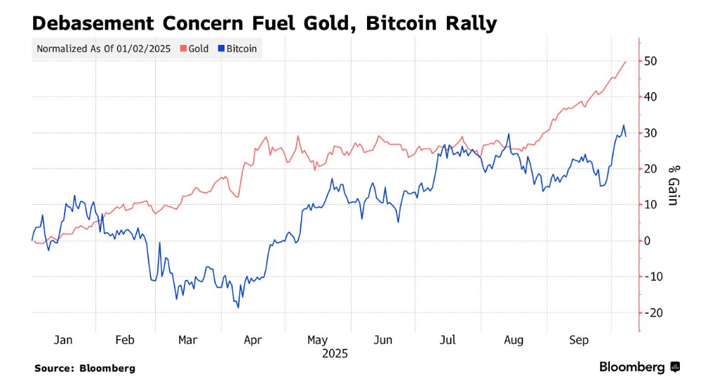 两人开展这项研究之际,比特币与黄金的需求均创下历史新高——受美国关税引发的不确定性及地缘政治风险影响,投资者正通过这两种资产对冲通胀,并为 「传统法定货币作用减弱的未来」 做准备。