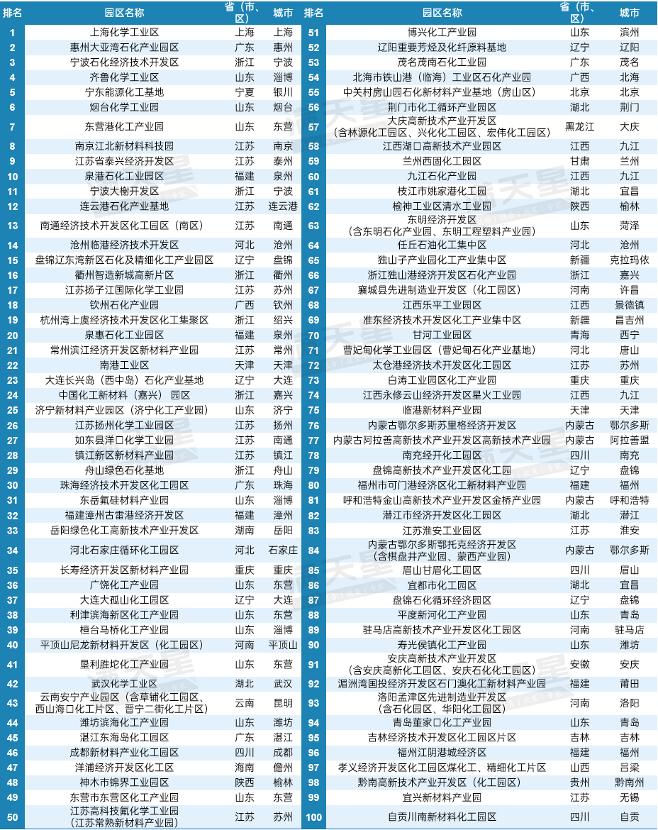 2025 化工园区综合竞争力百强名单图片来源:赛迪顾问