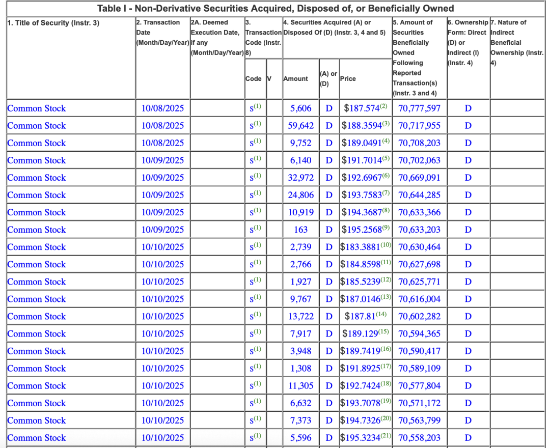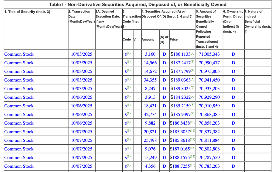 截至 2025 年 10 月 10 日,黄仁勋仍持有超过 7060 万股英伟达股票。