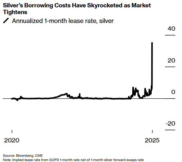 伦敦基准银价显著高于纽约市场,两者价差已飙升至近乎前所未有的水平。交易员们描述称,市场流动性已几乎完全枯竭,使得任何现货白银空头都难以获得实物白银,并被迫支付高昂的借贷成本以将其头寸展期。