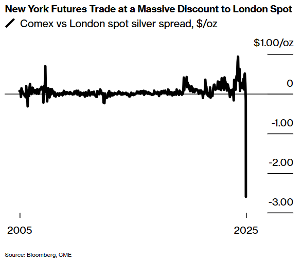 尽管如此,一些交易员不愿从纽约出口白银。物流流程复杂,尤其是在担忧政府停摆可能减缓海关流程的情况下,而伦敦的逼空行情意味着即使延迟一天也可能带来惩罚性的高昂成本。此外,人们仍然担忧特朗普在结束针对关键矿物 (包括白银) 的所谓 232 调查后,可能对白银征收进口关税。
