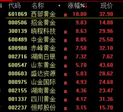 黄金股午后走强,西部黄金、白银有色等封板。消息面上,现货白银价格大涨近 3%,创下历史新高。现货黄金价格一度站上 4070 美元/盎司。