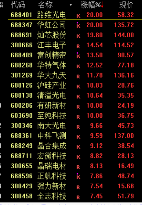 半导体产业链低开高走,华虹公司、路维光电等封板。