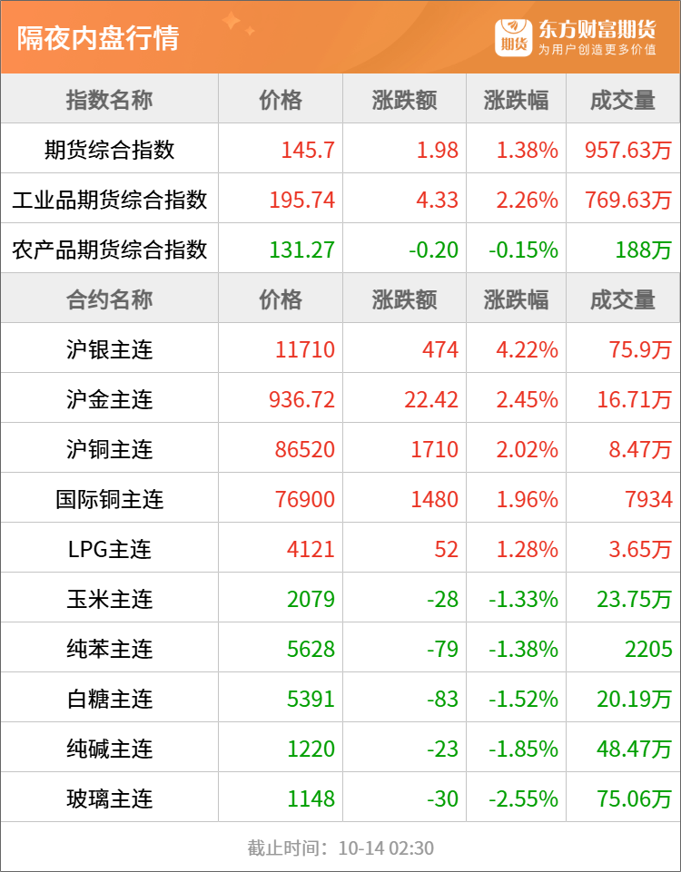 工业硅:10 月 13 日,华东不通氧 553#在 9200-9400 元/吨;通氧 553#在 9400-9500 元/吨;521#在 9500-9700 元/吨;441#在 9600-9700 元/吨;421#在 9600-9800 元/吨;421#有机硅用在 9800-10300 元/吨;3303#在 10500-10600 元/吨。昆明、黄埔港、四川、上海、天津、西北、新疆地区硅价也持稳。97 硅今日价格同样持稳。(SMM)