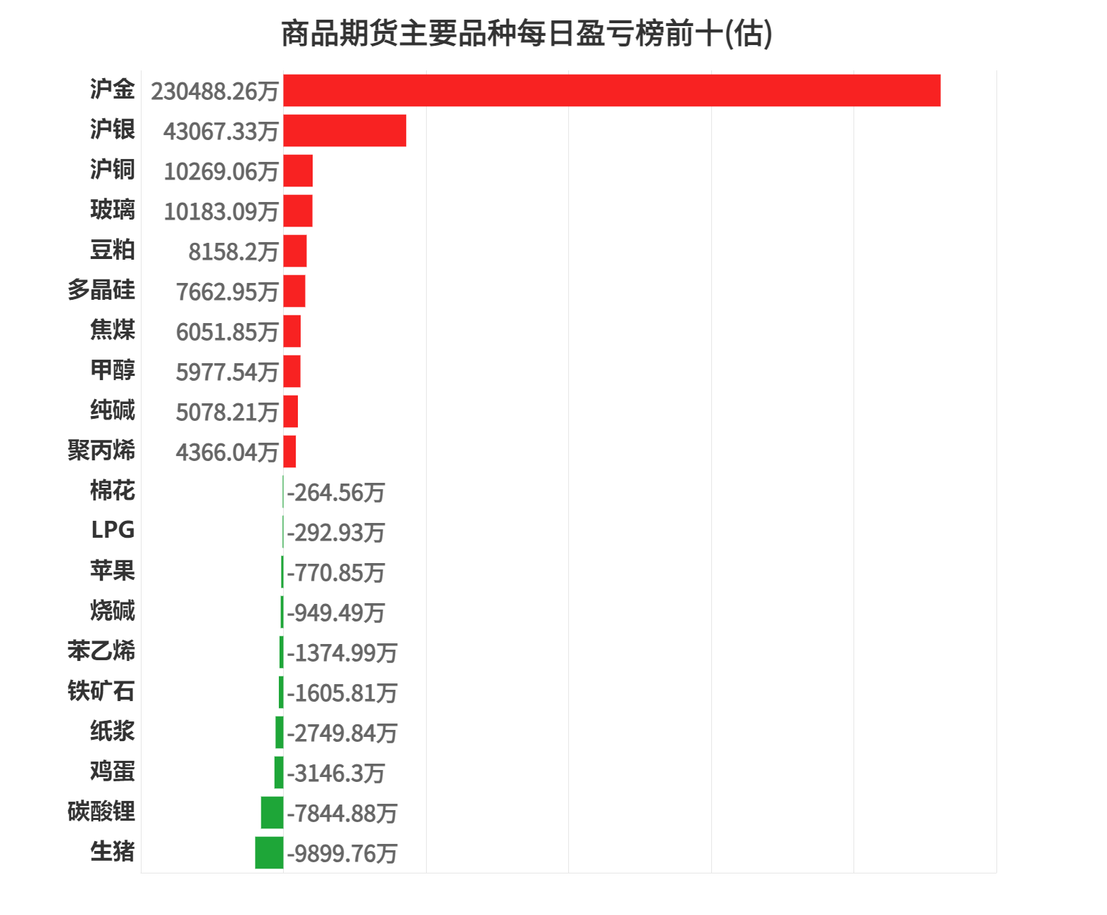今日商品期货上榜机构席位中沪金盈利第一,为 230488.26 万元。