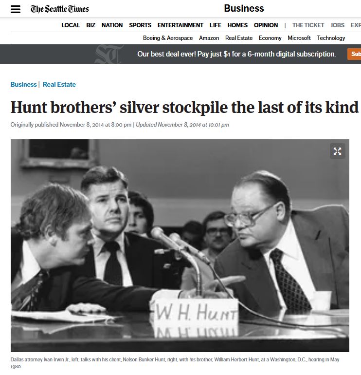 彼时黄金和白银作为抗通胀资产受到追捧,两位得克萨斯州石油大亨——纳尔逊·邦克·亨特和小威廉·亨特兄弟笃定法定货币将大幅贬值,坚信白银会像黄金一样成为保值资产。从 1970 年代中后期,他们便开始大举买入实物白银和期货合约,试图垄断白银市场。他们拒绝现金结算,坚持要求实物交割,直接导致市场流通白银急剧减少。据报道,亨特兄弟一度囤积了全球三分之一的流通白银存量。