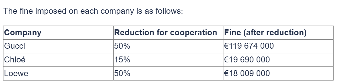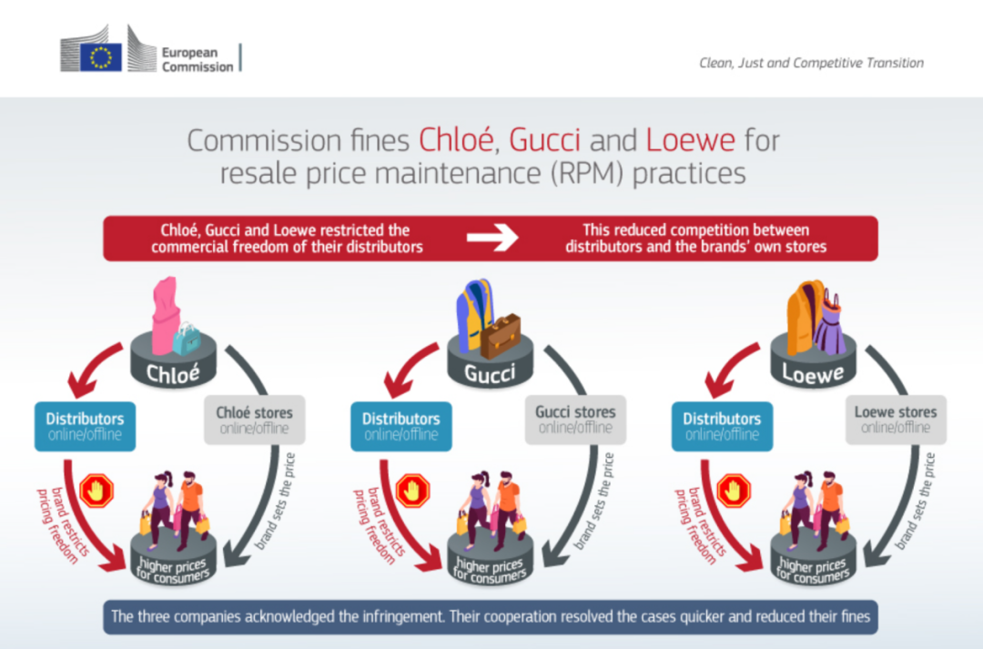 具体而言,这三家时尚公司通过对其零售商施加限制来干预其商业策略,力求让零售商采用与其自身直销渠道相同的价格和销售条件。例如,要求零售商不得偏离建议零售价格、最高折扣率以及特定销售时段;在某些情况下,禁止零售商提供任何折扣。