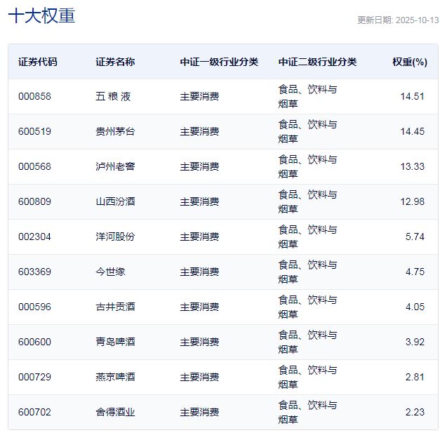 中证酒指数从沪深市场中选取涉及白酒、啤酒、葡萄酒酿造等业务的上市公司证券,成分股行业属性鲜明,聚焦酒类相关行业。其近年来累计收益显著跑赢沪深 300、上证 50 等主流宽基指数,且相对其他食品饮料、消费行业指数仍然体现出了较好的走势,投资于中证酒指数相对投资于个股体现出了明显的优势。
