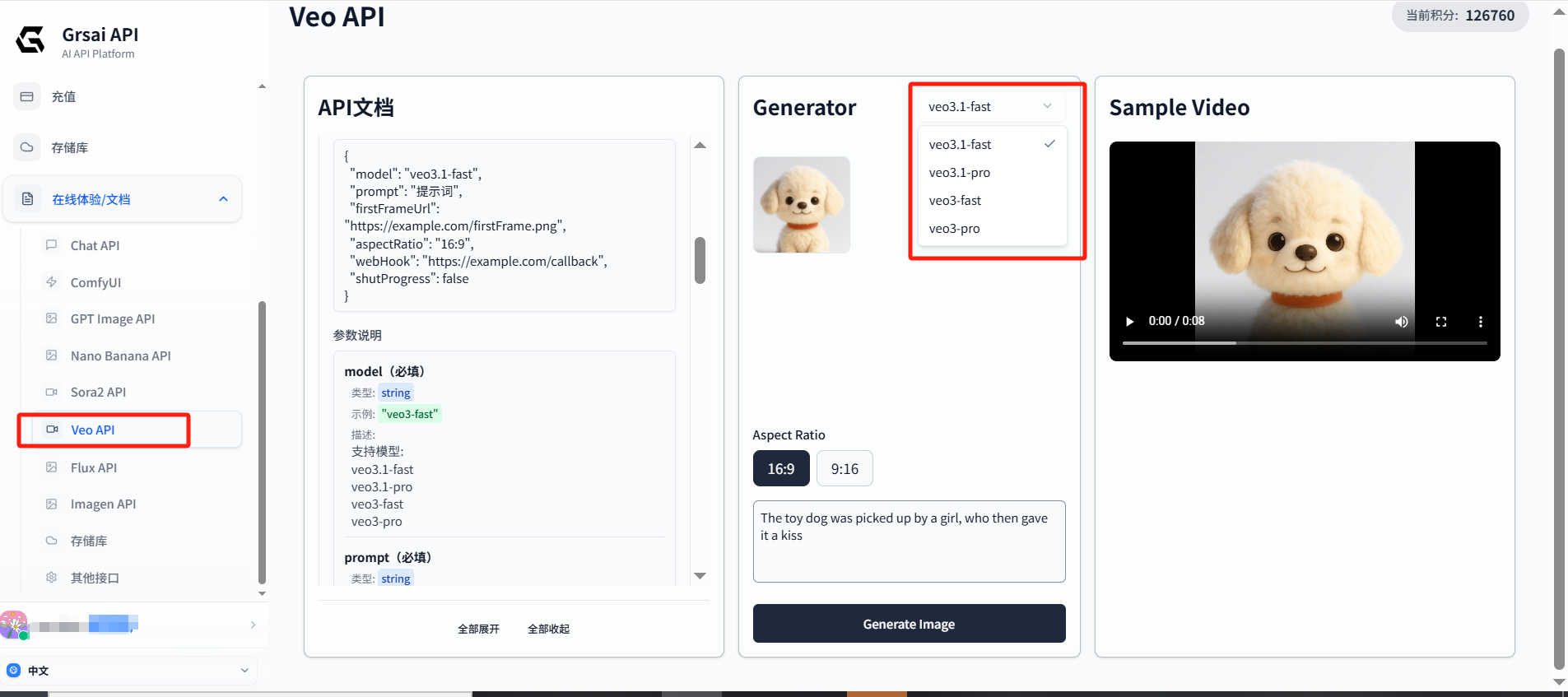 国内开发者可以到 GrsAi APi:https://grsai.com/聚合平台调用 Veo3.1 模型,价格和 Veo3 一样,基础版 Veo 3.1——0.4/条,veo3.1pro ——2/条