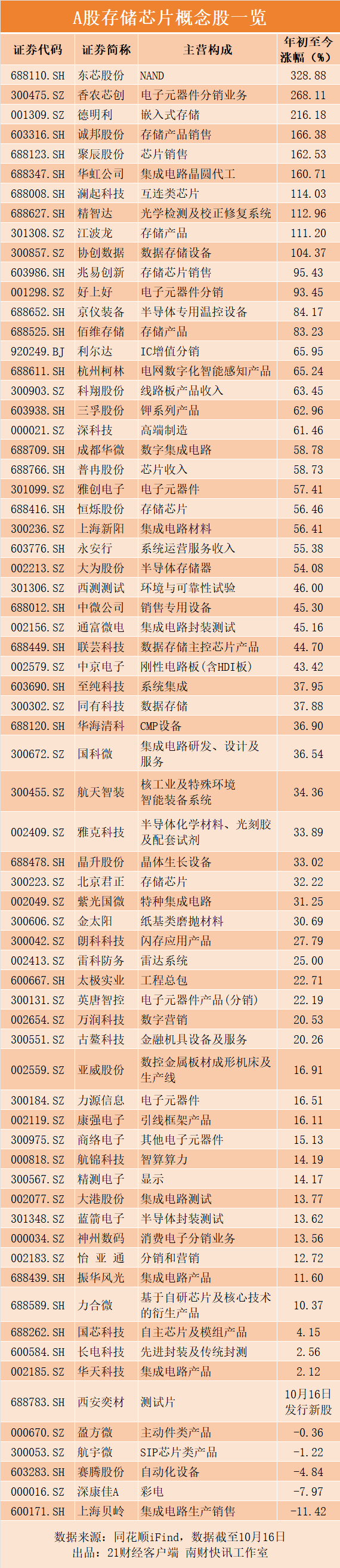 「量价齐升」 市场预期下,A 股存储芯片产业链公司股价一路飙升。年初至今,东芯股份涨超 3 倍,香农芯创、德明利涨超 2 倍,诚邦股份、聚辰股份、华虹公司、澜起科技、江波龙、协创数据、兆易创新等多只个股实现股价翻番。
