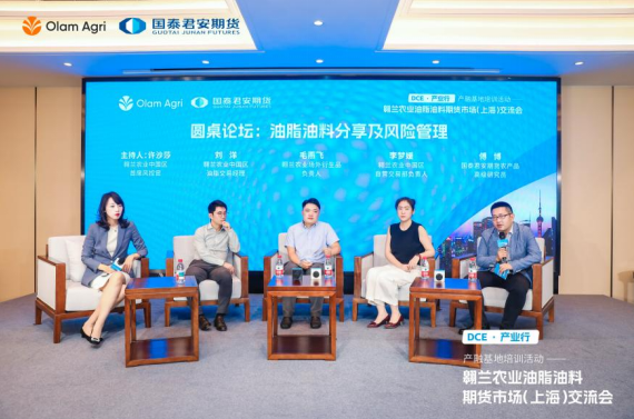 翱兰农业中国区首席风控官许沙莎、翱兰农业中国区油脂交易经理刘洋、翱兰农业场外衍生品负责人毛燕飞、翱兰农业中国区自营交易部负责人李梦媛、国泰君安期货农产品高级研究员傅博在圆桌论坛汇中围绕美豆采购、豆粕豆油需求、南美产量影响及进口替代等热点展开跨界对话。