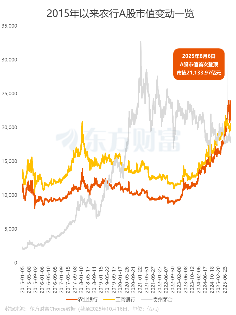 据证券时报·数据宝统计,截至 10 月 16 日收盘,农业银行 A 股市值达到 2.39 万亿元,稳坐 A 股市值冠军宝座,与亚军的差距拉开至 3300 亿元以上。