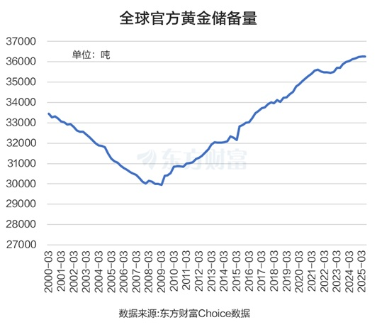 世界黄金协会最新表示,从战略层面看,黄金的总体持仓依然处于低位。据世界黄金协会制作的数据表,目前散户黄金投资占全球资产的比重在 2% 以下,央行黄金占外汇储备总量的比重在 30% 以下,两者占比均远未触及 1980 年的历史高位。截至今年 6 月末,世界黄金协会的数据显示,全球官方黄金储备达 36274 吨,创下历史新高。