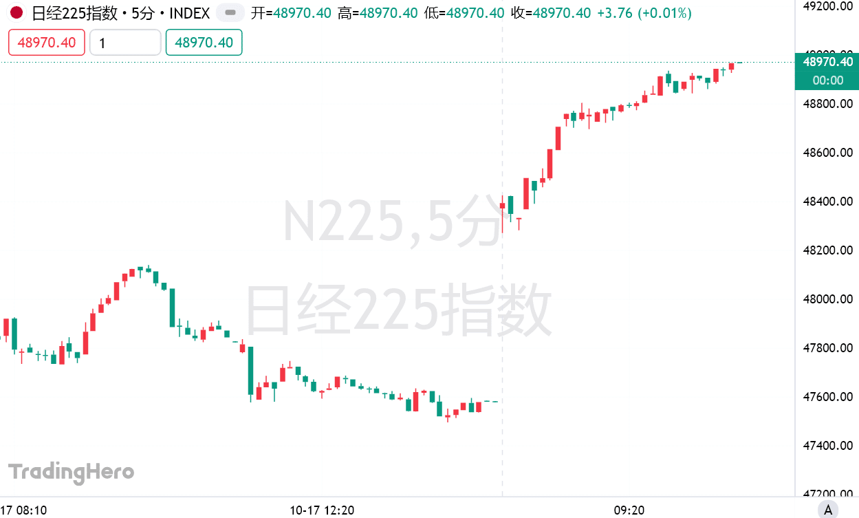 上述消息传出后,日经 225 指数历史上首次突破 49000 点,日内涨幅扩大至近 3%。