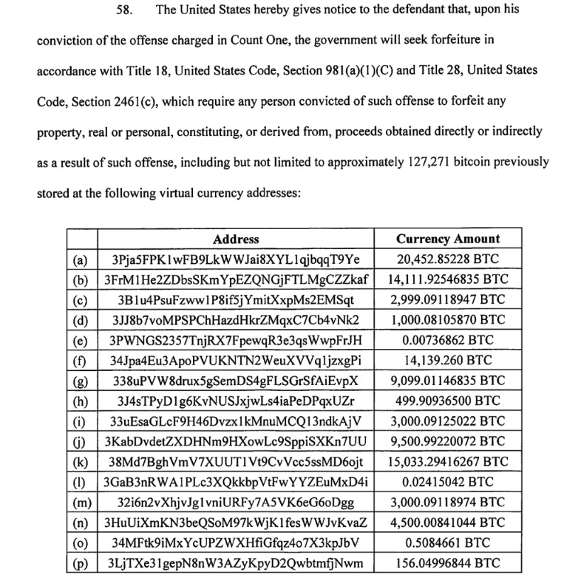 起诉书披露的加密货币地址。