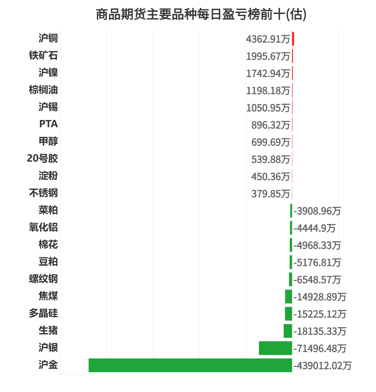 沪金亏损第一,为 439012.02 万元。