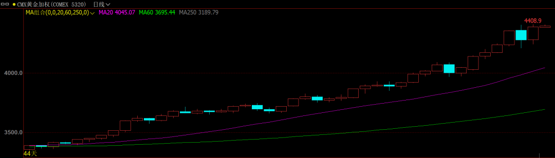COMEX 黄金期货涨 3.82%,报 4374.3 美元/盎司;现货黄金涨 2.48%,报 4357.36 美元/盎司;盘中均一度创历史新高。COMEX 白银期货涨 2.59%,报 51.4 美元/盎司。