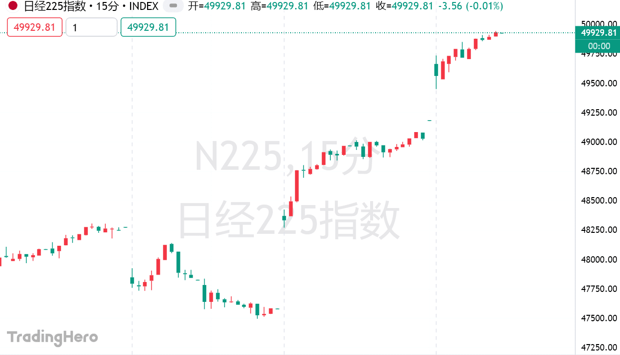 继周一刷新纪录后,日经平均指数早盘再度上涨,截至发稿涨约 1.5%,更广泛的东证指数也上涨 0.6%,同步创下历史新高。