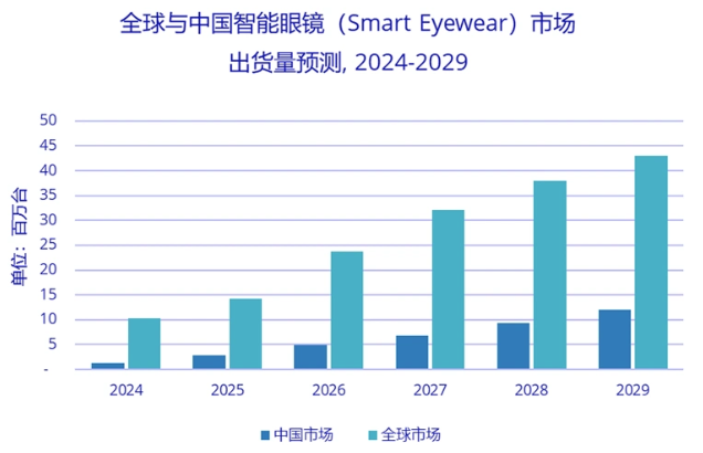 未来,随着产品形态持续创新、应用场景不断拓宽,智能眼镜有望成为下一代人机交互入口,为消费电子市场带来新增长动力。IDC 预计,到 2029 年全球智能眼镜市场出货量将突破 4000 万台,其中中国市场份额将稳步提升,预计五年复合增长率 (2024~2029 年) 将达到 55.6%,增速位居全球首位。