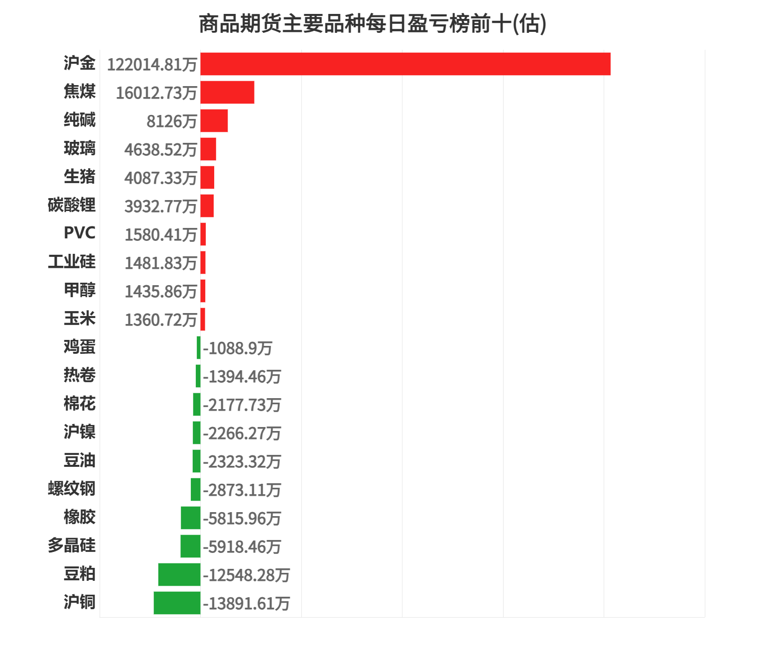 今日商品期货上榜机构席位中沪金盈利第一,为 122014.81 万元。