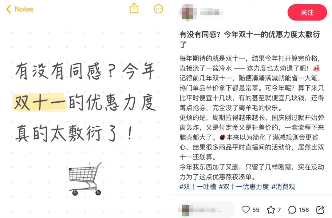作为一年一次的购物节,人们对双 11 的最大期待还是优惠力度。不少消费者反映,今年双 11 的优惠力度有点敷衍了。