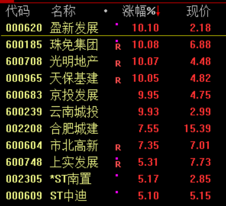 地产股继续反弹,天保基建、京投发展等封板。