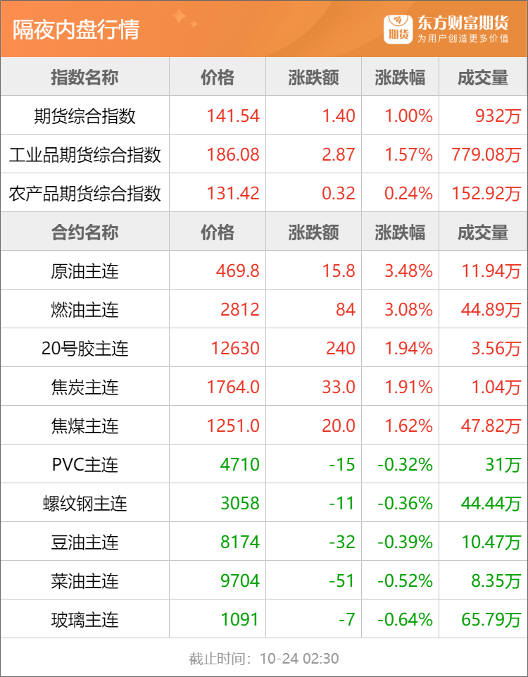 东方财富期货早餐 10月24日 周五