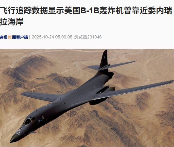 据央视新闻,当地时间 10 月 23 日,总台记者获悉,根据飞行追踪数据显示,当日至少有一架美国 B-1B 轰炸机靠近委内瑞拉沿岸。这是美国军机一周内第二次进行此类武力展示。