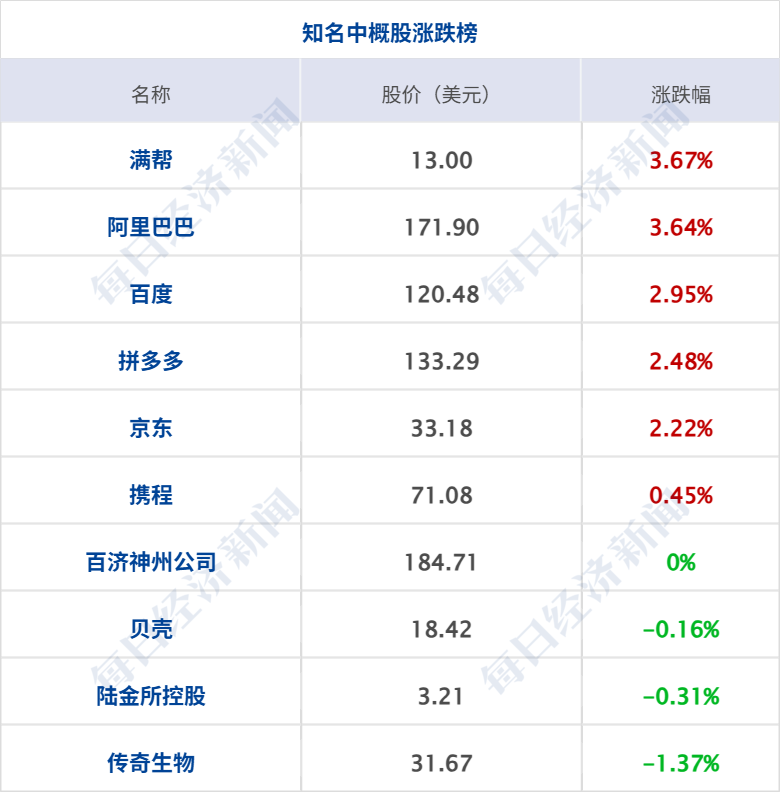 美股三大指数集体收涨,纳指涨 0.89%,标普 500 指数涨 0.58%,道指涨 0.31%;大型科技股多数上涨,英特尔涨超 3%,特斯拉涨超 2%,亚马逊、英伟达涨超 1%,苹果、谷歌、Meta、微软小幅上涨;奈飞小幅下跌。纳斯达克中国金龙指数涨 1.66%,中概股集体上涨,阿里巴巴涨 3.65%,百度涨近 3%,京东涨超 2%,小鹏汽车、网易涨超 1%。