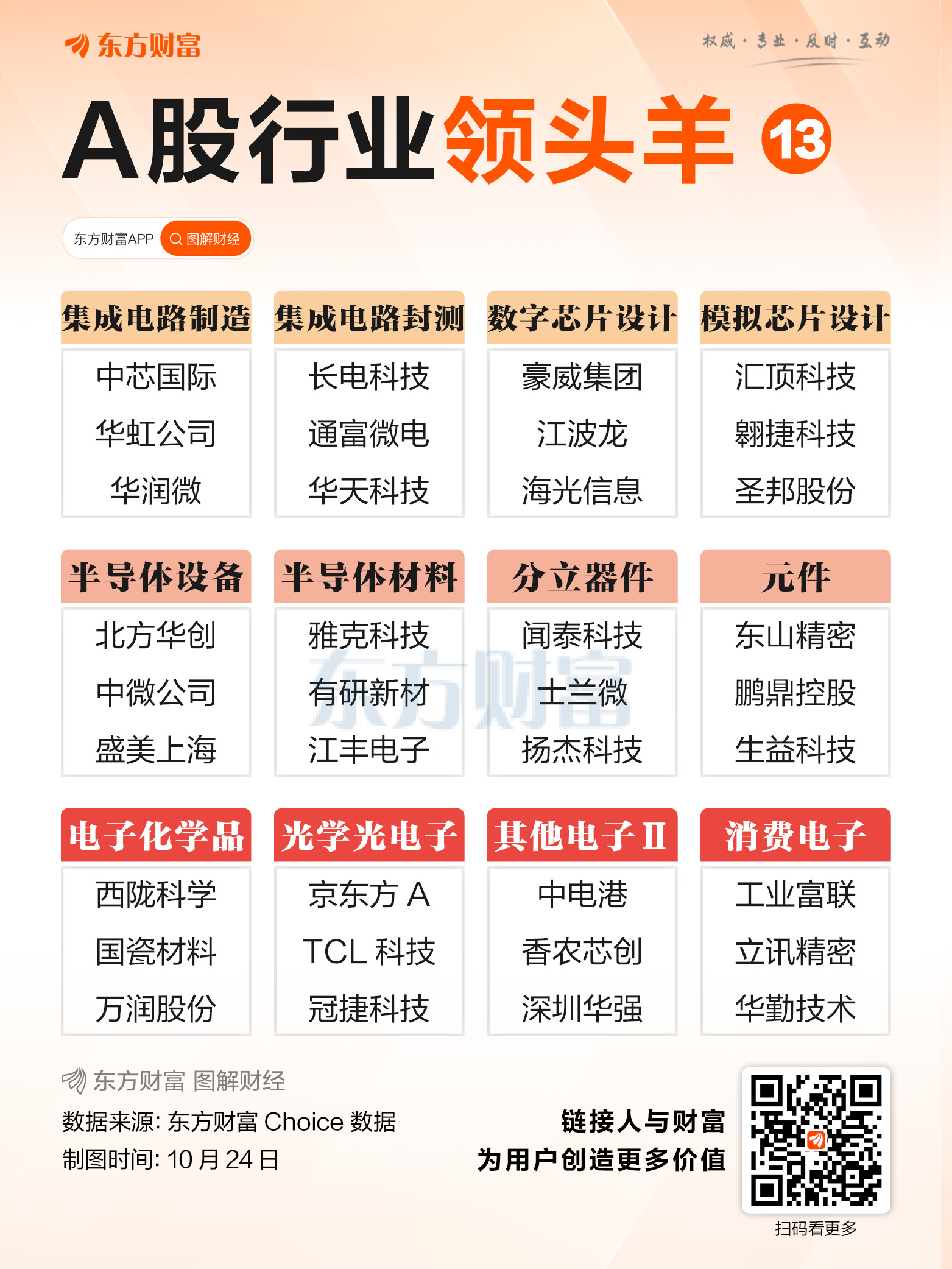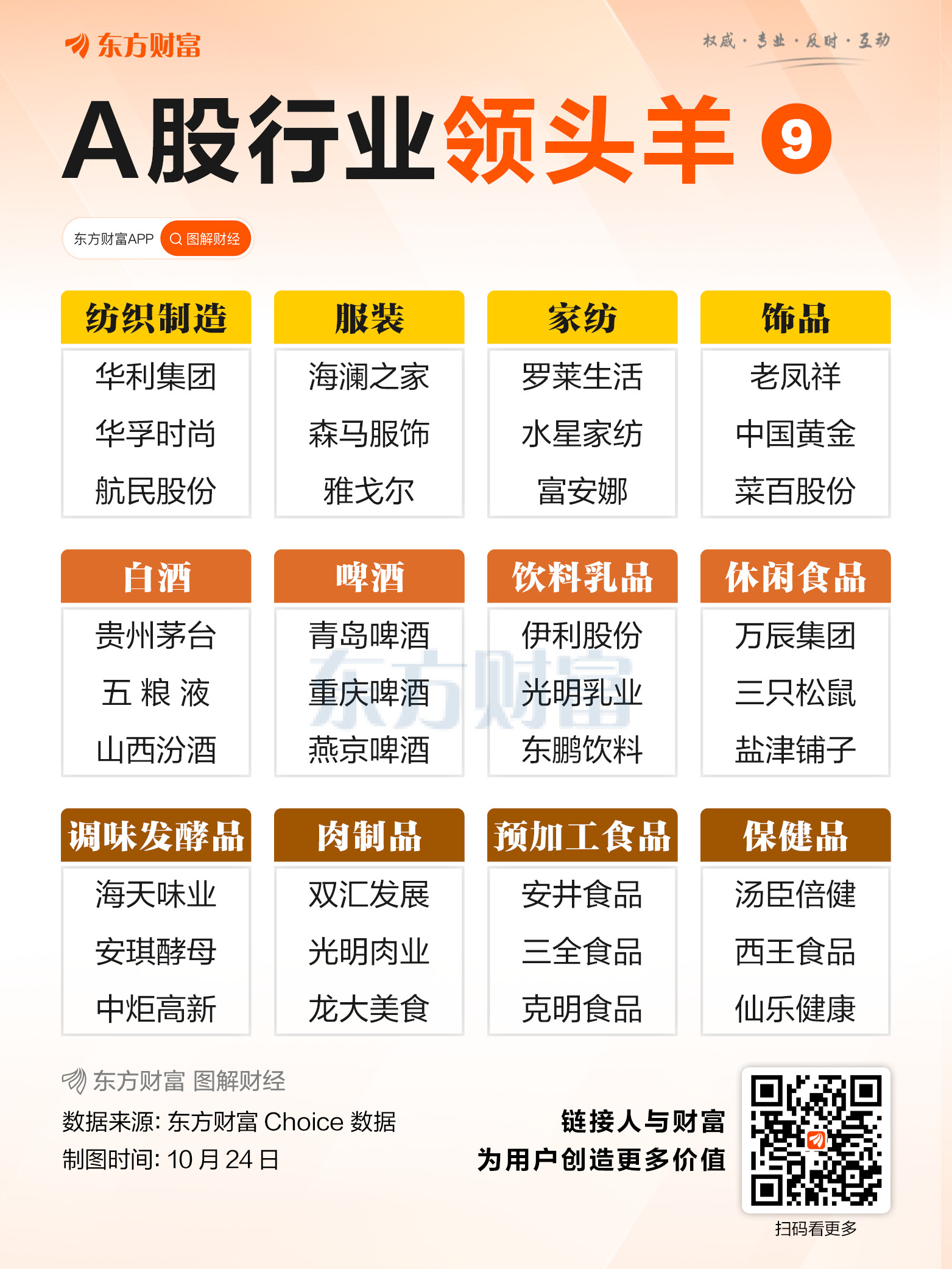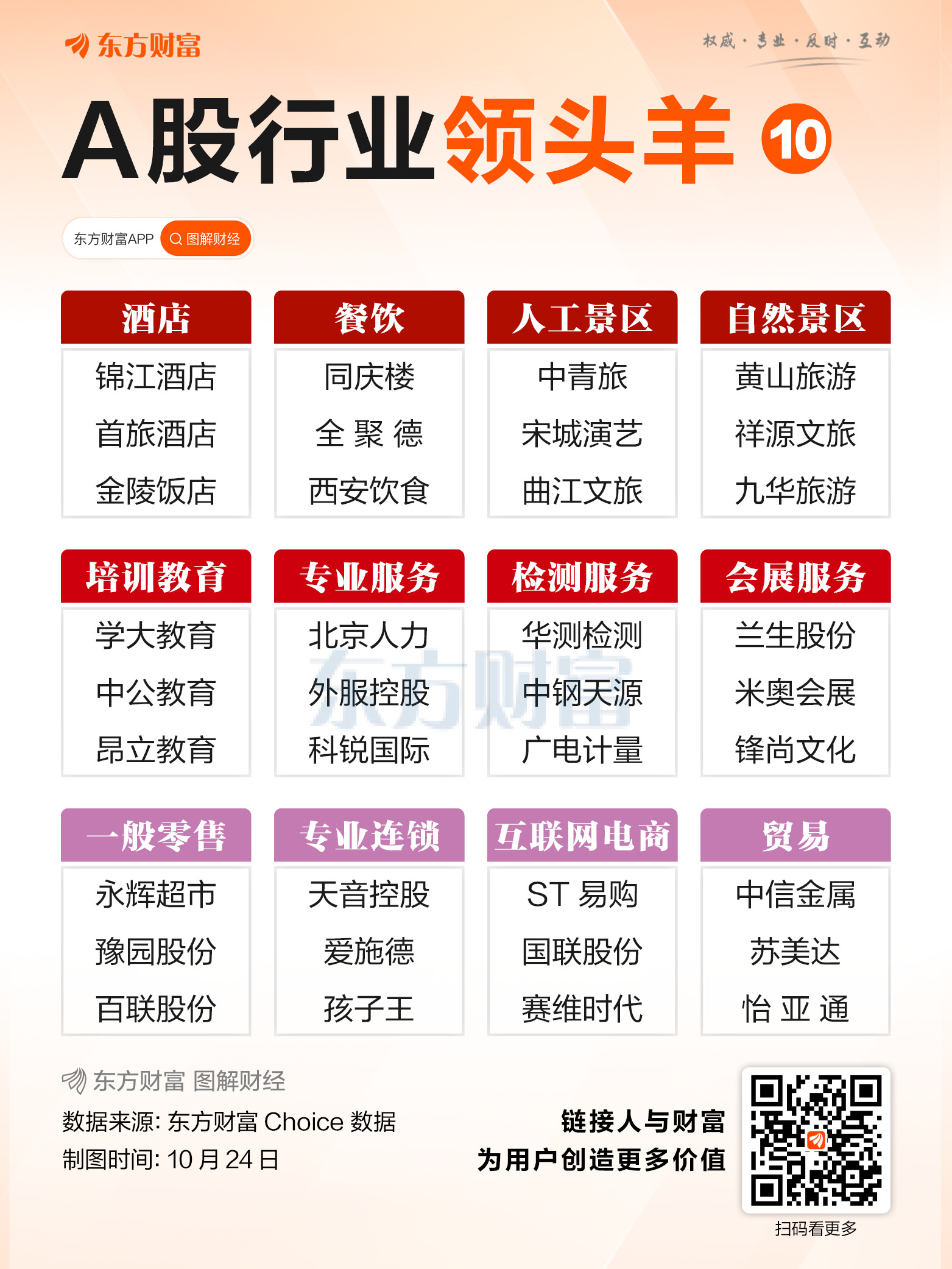 根据东方财富Choice 数据,本文筛选出了各行业最新营业总收入前三的个股作为行业 「领头羊」,总计包含申万一级行业 (除综合行业外)30 个,涉及申万二、三级行业 168 个。