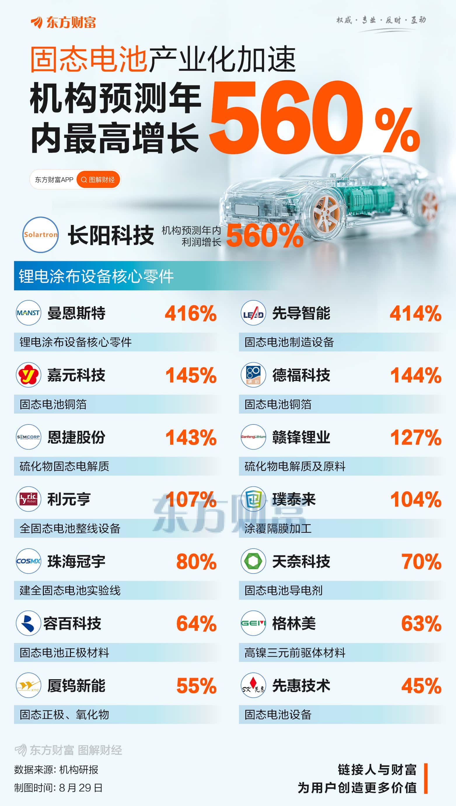目前,动力电池头部企业如宁德时代、国轩高科、欣旺达、中创新航(03931.HK) 等加速角逐固态电池量产时间,锂电产业链企业如亿纬锂能(300014.SZ)、整车企业如奇瑞 (09973.HK) 等,也想争夺固态电池市场份额。