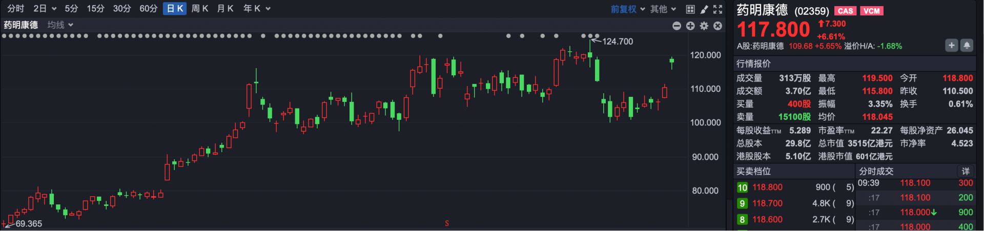 创新药方面,药明康德 (02359.HK)、昭衍新药 (06127.HK) 涨超 6%,药明合联 (02268.HK)、药明生物 (02269.HK) 涨超 5%,凯莱英 (002821.HK) 涨超 4%,康龙化成 (03759.HK) 涨超 3%。