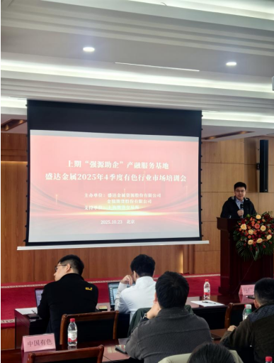 2025 年 10 月 23 日下午,由盛达金属资源股份有限公司和金瑞期货股份有限公司联合主办的 「上期 『强源助企』 产融服务基地盛达金属资源股份有限公司 2025 年四季度有色行业市场培训会」 在北京圆满落幕。