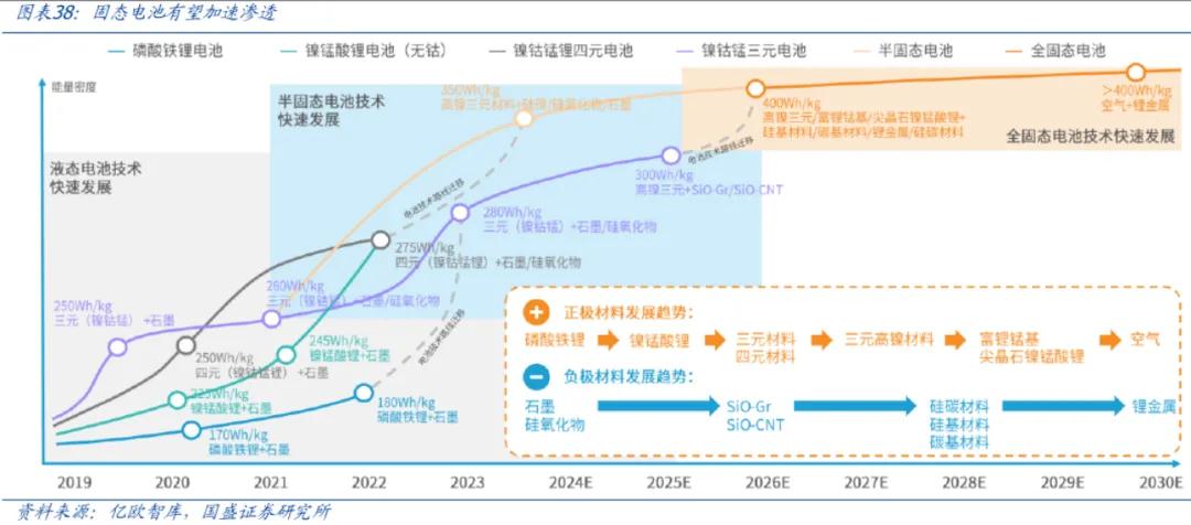 宁德时代计划在 2027 年实现小批量量产;国轩高科已进入中试量产阶段,并启动了 2GWh 级量产线的设计工作;欣旺达目标在 2027 年实现全固态电池能量密度突破 500Wh/kg;丰田更表示将于 2027-2028 年推出搭载全固态电池的纯电动车型。